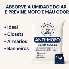 Absorve a umidade do ar e previne mofo, bolor e mau odor O Anti-Mofo Quimi é a solução prática e eficiente para combater a umidade em ambientes fechados. Sua fórmula com cloreto de cálcio de alta performance atua absorvendo o excesso de umidade do ar, prevenindo a formação de mofo, bolor e os odores indesejáveis causados por fungos.