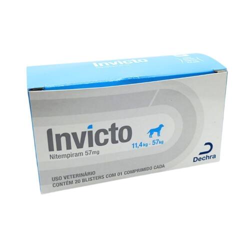 Conteúdo da embalagem: 20 - Comprimidos Invicto Nitempiram 57mg para cães e gatos de 11,4kg até 57kg Marca: Não Informado
