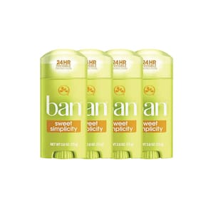 Antitranspirante invisível de 24 horas Ban Sweet Simplicity, desodorante sólido de 2,6 onças, proteção contra umidade nas axilas, com ingredientes que combatem odores (pacote com 4)