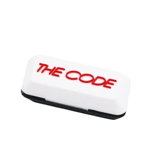 - Detalhamento: Embalagem com 02 unidades, de um lado, a cor é branco com a escrita "The Code" em vermelho, e do outro lado, a cor é preto com a escrita "Crack" em vermelho;