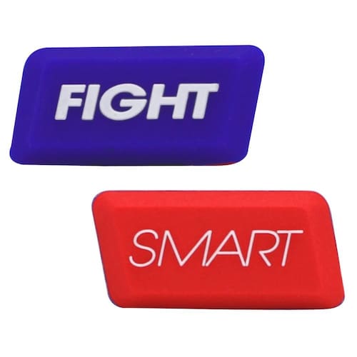 - Detalhamento: Embalagem com 02 unidades. Um lado na cor azul com a escrita "Fight" em branco e o outro lado na cor vermelha com a escrita "Smart" em branco;