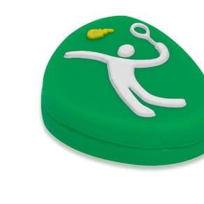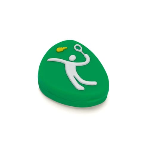 - Detalhamento: Antivibrador personalizado, Verde com detalhe estilizado de um tenista em branco, de fácil aplicação;