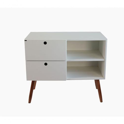 Aparador 02 gavetas 1 nicho com pés palito Branco Real - Mdf Arauco -