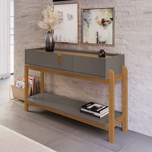 Aparador 02 Gavetas Lizz Cinza Pérola Cedro Casa D