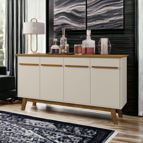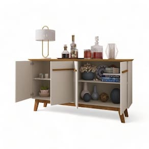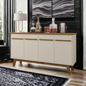 O aparador é uma peça versátil e elegante que pode ser usada em diversos ambientes da casa. Na sala, ele pode servir como um buffet para servir os convidados, como um aparador para guardar objetos decorativos ou como um bar para preparar drinks!