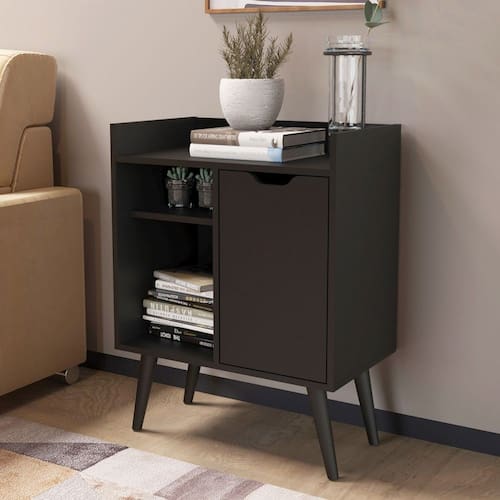 O(a) Aparador 1 Porta 1 Prateleira Ap2310 Preto - Tecno Mobili é produzido em MDP na escala de brilho Semi-Brilho, e possui um grau de dificuldade de montagem: Médio.