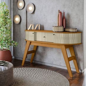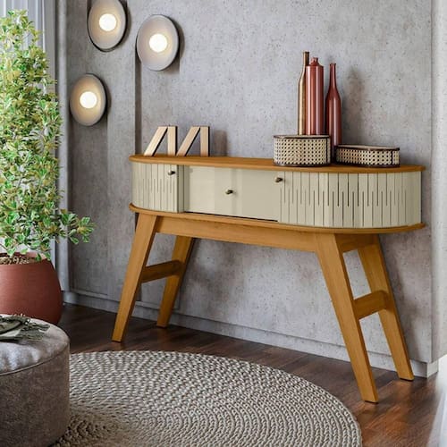 O Aparador Estoril é muito mais que um simples complemento decorativo; ele foi projetado para ser a peça central da sua sala de estar, destacando-se pelo seu design sofisticado de inspiração europeia. Com 1,36 m de largura, oferece uma presença imponente e elegante ao ambiente. Sua gaveta central com corrediças telescópicas garante praticidade, enquanto suas portas flexíveis em MDF, que acompanham as curvas do móvel, tornam o design inovador e fora do comum.