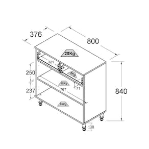- Possui 2 gavetas com corrediças metálicas que suportam até 5 kg cada.