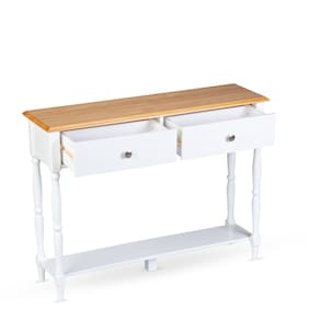 Aparador com design clássico e acabamento sofisticado. Produzido em madeira maciça, que realça os veios naturais. Possui duas gavetas funcionais com puxadores metálicos e prateleira inferior para apoio, é ideal para halls, salas ou quartos, unindo elegância e praticidade em um só móvel.