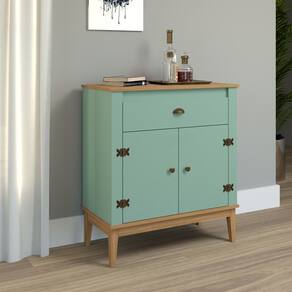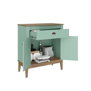 Aparador 2 Portas 1 Gaveta com Pés de Madeira Colonial Movelbento - Verde | Marrom