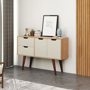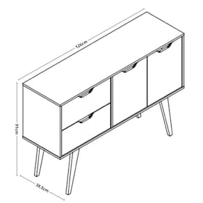 O Aparador 2 Portas 2 Gaveta com Pés de Madeira MB1097 Movelbento elegante e funcional, com 2 portas e 2 gavetas, ideal para salas de jantar, corredores ou halls de entrada. Sua estrutura é feita em MDP de 15 mm, com pés em madeira maciça e puxadores cava ocultos, oferecendo durabilidade, resistência e um design moderno que valoriza qualquer ambiente.