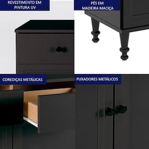 Aparador 2 Portas 2 Gavetas 80 Cm R629 Preto Dtall Preto