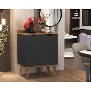 Aparador 2 portas buffet acalanto cantinho cafe pés palito preto / caramelo - comprar moveis em casa aparador buffet 4545, 2 portas estilo retrô, pés palito, embalado com caixa reforçada nas laterais para não ocorrer no transporte. Dimensões do produto montado altura: 0,80 cm largura:0,60 cm profundidade: 0,40 cm caracteristicas: pés palito em madeira maciça aprox. 17 cm altura portas com dobradiça metalica prateleira interna fixa produto em mdp / mdf. Montagem: este produto acompanha kit de montagem + manual de instrução detalhando passo a passo de como montar. A montagem do produto deverá ser feita por um profissional, para que não ocorram danos no produto. não nos responsabilizamos por erro de montagem atenção: a montagem não é oferecida pela loja parceira, a montagem do produto é por conta do comprador. Fotos meramente ilustrativas não acompanham os produtos de decoração. Observações importantes: o produto é lacrado e novo com embalagem. A garantia é de 90 dias por defeitos de fabricação. Se no ato de recebimento do produto o cliente verificar que o produto não está em prefeito estado, principalmente por ocasião de transporte irregular, o cliente deverá recusar o recebimento do produto e entrar em contato para resolver o problema. Podem haver variações referentes à tonalidade das cores expressas nas fotos, por conta de fatores como iluminação e brilho de cada monitor/celular. Fotos meramente ilustrativas, não acompanham os produtos de decoração.