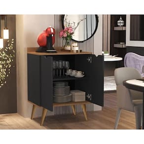 Aparador 2 portas buffet espresso cantinho café pés palito preto / caramelo - comprar moveis em casa aparador buffet 4545, 2 portas estilo retrô, pés palito, embalado com caixa reforçada nas laterais para não ocorrer no transporte. Dimensões do produto montado altura: 0,80 cm largura:0,60 cm profundidade: 0,40 cm caracteristicas: pés palito em madeira maciça aprox. 17 cm altura portas com dobradiça metalica prateleira interna fixa produto em mdp / mdf. Montagem: este produto acompanha kit de montagem + manual de instrução detalhando passo a passo de como montar. A montagem do produto deverá ser feita por um profissional, para que não ocorram danos no produto. não nos responsabilizamos por erro de montagem atenção: a montagem não é oferecida pela loja parceira, a montagem do produto é por conta do comprador. Fotos meramente ilustrativas não acompanham os produtos de decoração. Observações importantes: o produto é lacrado e novo com embalagem. A garantia é de 90 dias por defeitos de fabricação. Se no ato de recebimento do produto o cliente verificar que o produto não está em prefeito estado, principalmente por ocasião de transporte irregular, o cliente deverá recusar o recebimento do produto e entrar em contato para resolver o problema. Podem haver variações referentes à tonalidade das cores expressas nas fotos, por conta de fatores como iluminação e brilho de cada monitor/celular. Fotos meramente ilustrativas, não acompanham os produtos de decoração.