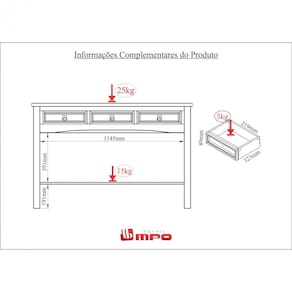 O destaque do Rústico e Contemporâneo estão unificados nas linhas Rustic e Imperial. São produtos com ar do interior, da fazenda e do campo com um toque de aconchego, mas sem deixar de lado o toque moderno e atual. Estruturada em Madeira maciça de pinus reflorestada que proporciona maior resistência e vida útil do móvel. Contém corrediças em madeira maciça, além de puxador diferenciado de ferro envelhecido que aprimora ainda mais o ar rústico colonial. Produto Montado: Sim Altura dos Pés: 81 cm Ambiente: Sala de Estar Ambiente Principal: Sala de Estar codigo_ean: 7898384770687 Complexidade da Montagem: Baixa: pode ser montado por uma pessoa sozinha Cor: Imbuia Gaveta com Chave: Não Itens Inclusos: 01 aparador e manual de montagem Manual de Montagem e Instalação: https://product-hub-prd.madeiramadeira.com.br/460541/documents/be98bac1-8620-4203-9499-2dd661371af4cb892754758023aparador3gav.pdf Necessita Montagem: Sim Origem do Produto: Nacional Peso: 22,5 kg Peso Máximo por Gaveta: 5 kg Possui Adega: Não Possui Espelho: Não Possui Gavetas: Sim Possui Pés: 04 Possui Portas: Não Possui Prateleiras: Sim Possui Rodízio: Não Possui Vidro: Não Quantidade de Garrafas da Adega: Não Quantidade de Prateleiras: 01 Prateleira Sapatas Niveladoras: Não Sistema de Montagem: Parafusos Suporta Até (kg): 60 kg Tipo de Madeira Maciça: Pinus Tipo de Madeira Maciça da Gaveta: Pinus Tipo de Madeira Maciça da Prateleira: Pinus Tipo de Madeira Maciça dos Pés: Pinus Tipo de Puxador da Gaveta: Externo