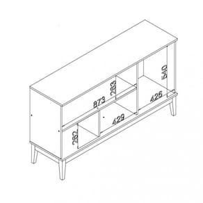 Características: Estrutura em MDP 15mm e MDF 3mm Acabamento em Pintura UV 3 Portas 5 Pés 1 Prateleira Interna