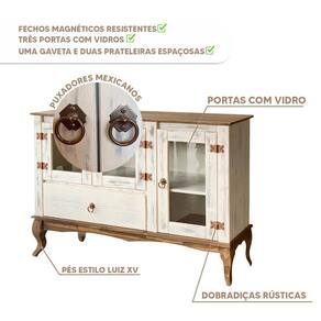 3 portas com vidros de 3 mm e fechos magnéticos: Praticidade e segurança no armazenamento, com um toque de elegância. Conta também com uma prateleira interna.