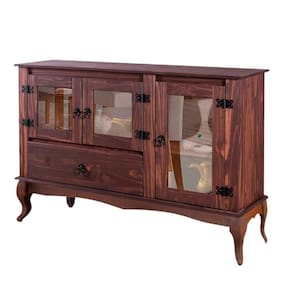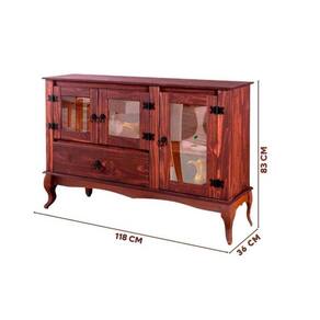 Aparador 3 Portas Vidro Madeira Maciça Rústico Imbuia D125 Shop Jm Imbuia