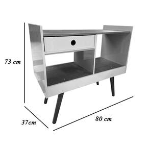 Aparador 4064 Buffet Retro Pés Palito com Gaveta JB Bechara O Aparador 4064 Buffet Retro Pés Palito com Gaveta JB Bechara é a escolha perfeita para trazer charme e funcionalidade para o seu espaço! Além do visual elegante, o modelo também oferece praticidade com sua gaveta espaçosa. Perfeito para armazenar utensílios de jantar, documentos importantes, ou até mesmo a coleção de canetas coloridas do seu filho adolescente. Deixe o seu lar refletir o seu estilo único com o Aparador 4064 Buffet Retro Pés Palito com Gaveta JB Bechara. Tenha um produto que não só oferece funcionalidade, mas também se destaca visualmente em qualquer ambiente. Então, se estiver pronto para adicionar um toque de personalidade à sua casa, não perca a oportunidade de ter o Aparador 4064 Buffet Retro Pés Palito com Gaveta JB Bechara. Seja na sala de jantar, na sala de estar, ou até mesmo no escritório, este móvel vai conquistar o coração e os olhos de todos que o virem!\nMEDIDAS\nAltura 73 cm\nLargura 80 cm\nProfundidade 37 cm\nCARACTERÍSTICAS\nFabricante JB Bechara\nModelo Aparador 4064\nGarantia 3 meses\nTipo de produto Aparador\nAmbiente Diversos\nMaterial MDP\nQuantidade de Pés 04\nEstilo Retro\nQuantidade de Portas Não Possui\nAcabamento Pintura UV\nEscala de Brilho Semi-Brilho\nTipo de Porta Não Possui\nQuantidade de Gavetas 01\nTipo de Gaveta Gaveta Passante (Abre para os dois lados)\nMaterial Pés Madeira Maciça\nNecessita Montagem Sim\nAcompanha Manual de Instalação Sim\nINFORMAÇÕES IMPORTANTES\nObjetos decorativos que porventura apareçam na foto, não acompanham o produto. Não nos responsabilizamos pela montagem/instalação dos produtos.\nMontagens, desmontagens e instalações são responsabilidades do cliente. Indicamos que contrate uma empresa de montagem ou um montador de sua confiança.\nAlém disso, favor verificar se os pés e acessórios estão dentro do forro inferior do produto. Em suma, todas as informações divulgadas sobre o produto são de responsabilidade do Fabricante.\nAs cores do produto podem variar de acordo com o seu monitor, a iluminação do ambiente em que você está e até mesmo a sua percepção visual. Além da cor, pequenos detalhes e acabamentos podem não ficar evidentes na foto, por isso as imagens são meramente ilustrativas.