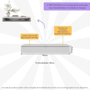 Dimensões do produto montado: Altura: 13,8cm | Largura: 90cm | Profundidade: 45cm *Você pode consultar as medidas detalhadas na imagem técnica do produto.
