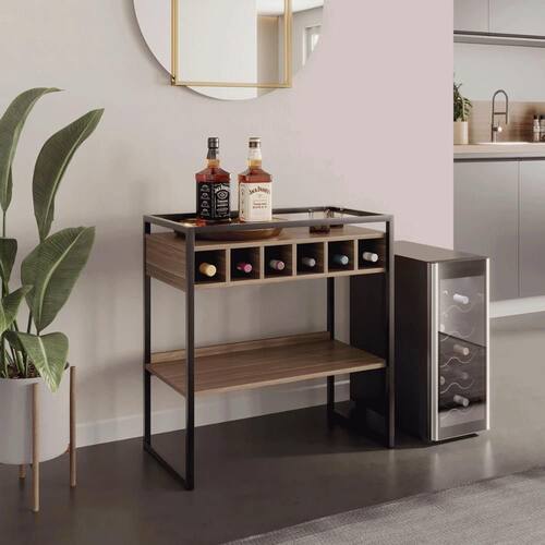 Aparador Adega Barcelona Affara com Prateleira e Nichos para Vinhos - Marrom