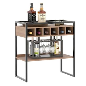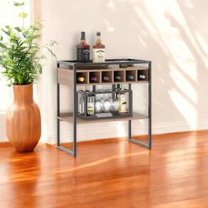 Aparador Adega Barcelona Montana com Prateleira e Nichos para Vinhos - Marrom | Grafite | Preto