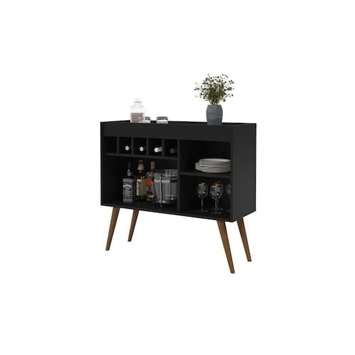 O Aparador Adega New Odin – EJ Móveis possui um Lindo design em móvel compacto e charmoso,com pés de madeira “palito retrô”, tampo superior estilo bandeja, adega com espaço para 5 garrafas com nicho para armazenamento e decoração de acordo com sua criatividade