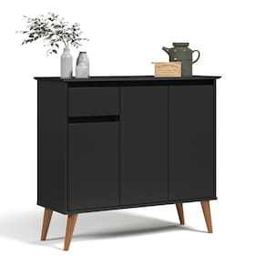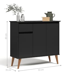 Aparador Amsterda Preto Buffet aparador foi projetado para agregar diferentes espaços e ambientes, proporcionando elegância, charme e sofisticação. Conta com uma gaveta para organização de objetos com corrediças telescópicas deixando a abertura e o fechamento muito mais delicado e macio, que aumentando a durabilidade do produto. Dimensões do produto montado: Altura: 83 cm Largura: 93 cm Profundidade: 35 cm Características: - Material MDF/MDP - Cor preto - Nicho - Pés - Prateleira - Porta - Gaveta Itens Incluso: 01 Aparador. Kit completo para montagem. Manual de montagem. Observações: - Não nos responsabilizamos pela montagem do produto. - Sistema de Montagem: Parafusos, Cavilhas e Tampos. - É recomendado que a montagem seja feita por um profissional qualificado. - As imagens indicam uma sugestão de uso e são apenas ilustrativas, os objetos decorativos não estão inclusos. - Ao iniciar a montagem, forre o chão com o papelão das embalagens para proteger as peças de arranhões. Instruções e Cuidados: Limpar com pano seco, manter em lugar livre de umidade, ao abrigo de exposição direta ao sol. GARANTIA DO FABRICANTE: 3 | QUANTIDADES DE CAIXAS DE EMBALAGEM: 1 | COR PREDOMINANTE: PRETO | CORES DO PRODUTO (FILTRO DE CORES): PRETO | DESCRIÃ?Ã?O DO TAMANHO: 83X93X35 | MATERIAL PRINCIPAL: MDF/MDP | ESTADO DE ORIGEM: SP | INSTRUÃ?Ã-ES/CUIDADOS: Limpar com pano macio e seco, nÃo utilizar produtos abrasivos. | PRODUTO PRECISA DE MONTAGEM?: Sim, a montagem à facil mas sugerimos a contrataÃÃo de um montador profissional para a montagem do produto. NÃo nos responsabilizamos por danos causados no ato da montagem. | ALTURA DO PRODUTO (CM): 83 | LARGURA DO PRODUTO (CM): 93 | COMPRIMENTO DO PRODUTO (CM): 35 | PESO DO PRODUTO (KG): 26 | ALTURA DO PRODUTO COM EMBALAGEM (CM): 15 | LARGURA PRODUTO COM EMBALAGEM (CM): 38 | COMPRIMENTO PRODUTO COM EMBALAGEM (CM): 98 | PESO PRODUTO COM EMBALAGEM (KG): 26 | PRODUTO: APARADAOR | MARCA: CASAH | QUANTIDADE DE PORTAS: 3 | QUANTIDADE DE PRATELEIRAS: 1 | QUANTIDADE DE NICHOS: 2 | QUANTIDADE DE GAVETAS: 1