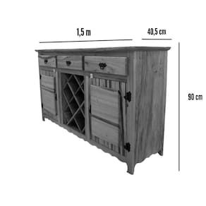 APARADOR ARCAIS ADEGA 1,5M MADEIRA MACIÇA - RAFFINATOAlém do charme na decoração, esse aparador também oferece uma funcionalidade essencial por conta de suas dimensões, no qual suas prateleiras podem ser usadas como espaços de armazenagem.Produzido 100% com madeira maciça selecionada e um acabamento com verniz especial, ele traz sofisticação e requinte, tornando qualquer ambiente mais agradável e receptivo.