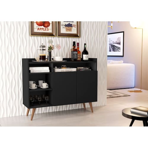 Aparador Balcão Buffet Celta Retro 2 Portas Preto - Rede Móveis