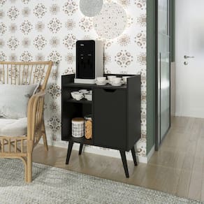 Com design retrô e moderno, o aparador AP2310 entrega ao ambiente ar de requinte e muita modernidade. Multifuncional permite ser utilizado como mesa para bar, balcão buffet e como o cantinho do café. Possui uma porta com dobradiças metálicas e amplo espaço interno. Duas prateleiras e tampo superior para acomodar bebidas, cafeteira, objetos de decoração e etc. Especificação do produto: Produzido em MDP de 15mm. Pé cônico em PVC com 23cm de altura. Possui 01 Porta com dobradiça metálica, 02 prateleiras e acabamento em BP/FF. Atributos que garantem ao produto maior resistência e vitalidade. Dimensões do Produto Montado: Altura: 78,5cm Largura: 60cm Profundidade: 34,8cm. Imagem meramente ilustrativa. A decoração do ambiente não acompanha o produto, o produto é entregue novo e desmontado. Acabamento: Finish Foil Acabamento da Porta: Finish Foil Acabamento da Prateleira: Finish Foil Acabamento dos Pés: Liso Altura dos Pés: 23 cm Ambiente Principal: Sala de Estar Complexidade da Montagem: Média: pode ser montado por mais de uma pessoa e/ou necessite de maior conhecimento para montagem Cor: Preto Cor do Produto: Preto Cor Interna: Preto Escala de Brilho: Semi-Brilho Escala de Brilho da Porta: Semi-Brilho Escala de Brilho da Prateleira: Semi-Brilho Itens Inclusos: Kit Ferragem e Manual de Montagem. Linha ou Coleção: AP Manual de Montagem e Instalação: https://cdn2.madeiramadeira.com.br/atributo/tecno-mobili/1305845-ap-2310.pdf Material da Porta: MDP Material da Prateleira: MDP Material dos Pés: PVC Material Principal: MDP Necessita Montagem: Sim Origem do Produto: Nacional Pés Reguláveis: Não Peso: 12,7 kg Peso Máximo por Prateleira: 5 kg Possui Adega: Não Possui Bandeja: Não Possui Possui Espelho: Não Possui Gavetas: Não Possui Pés: 04 Possui Portas: 01 Possui Prateleiras: 02 Possui Rodízio: Não Possui Vidro: Não Recomendações de Uso, Manutenção e Limpeza: Para uma limpeza mais efetiva, utilizar apenas pano macio umedecido e sabão neutro. Não utilizar produtos abrasivos. Sapatas Niveladoras: Não Sistema de Montagem: Sim. Aconselhamos que a montagem seja feita por um profissional. Forre o chão com o próprio papelão de nossas embalagens para evitar danos e arranhões e monte o móvel deitado de costas para cima. Após montado não expor o móvel a fonte de calor ou umidade. Suporta Até (kg): 15 kg Tipo de Dobradiça/Corrediça da Porta: Metálica Tipo de Porta: Bater Tipo de Puxador da Porta: Não Possui - Abertura por Fecho Toque