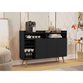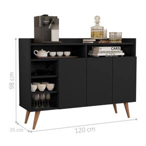 Buffet Markab Preto O Buffet Markab é o móvel perfeito para ambientes como sala de jantar e sala de estar Possui amplas divisões internas, que ajudam a melhorar a organização dos objetos ali dispostos. Possui cantos arredondados, pés de madeira. Dimensões do produto: Altura: 97 cm Largura: 1.19 cm Comprimento: 35 cm Informações do produto: Possui gavetas: Não.