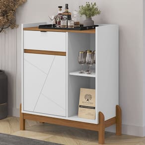 Dê um toque especial ao seu ambiente com o Aparador Bar, projetado para aliar design moderno e praticidade. Com 81cm de largura, é produzido em MDF de 15mm, MDP de 15mm e 25mm, que oferecem resistência e durabilidade. Sua porta usinada em MDF é equipada com dobradiças de sistema softclose, garantindo fechamento suave e silencioso. A gaveta, que proporciona organização e facilidade de acesso, conta com puxador de metal e corrediças telescópicas, que garantem um deslizar suave sem barulhos incômodos. Os pés em madeira maciça conferem estabilidade e contam com um acabamento com feltro protetor para evitar danos ao piso. Ideal para compor salas de estar, jantar, ou escritórios, o Aparador Bar é a escolha perfeita para quem busca um móvel funcional e estiloso. Este móvel chegará em sua casa separado em 01 volume.