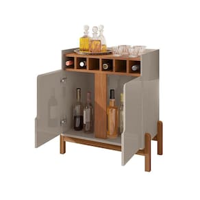 AS IMAGENS SÃO MERAMENTE ILUSTRATIVAS E PODEM SOFRER VARIAÇÕES DE COR E PEQUENOS DETALHES DE ACORDO COM O SEU MONITOR, ILUMINAÇÃO DO AMBIENTE E ATÉ MESMO A SUA PERCEPÇÃO VISUAL.Aparador Bar Lizz com Adega e 2 Portas 79cm Off-white/cedro