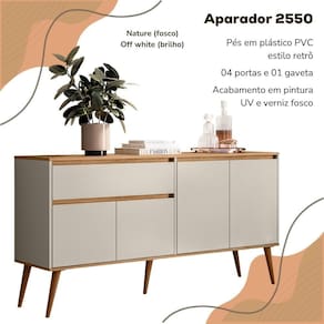 Aparador Buffet 160 Cm 4 Portas Ra2550 Off White Nature Plla Off White Nature