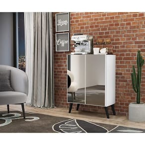 O Aparador Buffet 3 Portas com Espelho Retrô Vegas Multimóveis é produzido em MDP, que garante maior durabilidade, facilidade na limpeza, além de um acabamento superior. Com 3 portas, possui acabamento acetinado (cerca de 20% de brilho) e um excelente espaço interno para organizar seus pertences (as prateleiras internas suportam 2 e 5 Kg cada e o tampo 7 Kg). Os pés retrô, em polipropileno, e os detalhes com espelhos nas portas dão um charme especial ao móvel deixando-o com um visual leve e permitindo você compor um ambiente com ar vintage e moderno ao mesmo tempo. Os espelhos são de vidro (o que evita que a imagem fique distorcida) e lapidados, ou seja, passam por um processo para que as bordas não fiquem cortantes, o que garante maior segurança. Seu design minimalista, torna o móvel muito versátil, podendo ser utilizado de diversas maneiras e em qualquer ambiente.