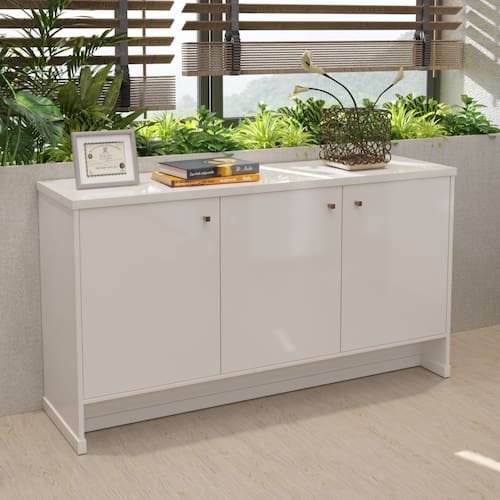 Aparador ou Buffet? Você que escolhe qual a melhor maneira para usar nosso Berlin, desenvolvido com exclusividade pela ViaNossa com a mais alta qualidade, vai proporcionar mais funcionalidade deixando seu lar cheio de estilo. Com o material em MDP, tampo em 25 mm, 3 prateleiras internas, 3 portas articuladas com dobradiças metálicas, puxadores em ABS e pés ripados em MDP com sapatas plásticas garantindo a durabilidade do seu móvel.