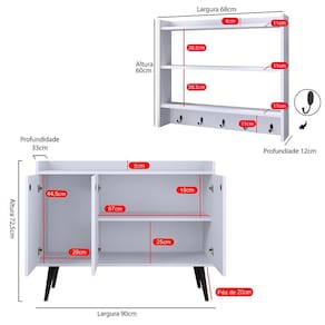 Ambas as peças são fabricadas com materiais de qualidade, assegurando durabilidade e resistência. O design moderno e a paleta de cores versátil garantem que esses elementos integrem estilo e organização de maneira única, proporcionando uma experiência completa para o seu lar.