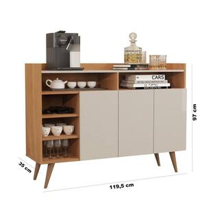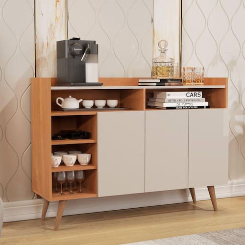 Aparador Buffet Retrô Celta é ideal para sua sala! Com designer retrô ele irá agregar muito mais charme e requinte ao seu ambiente. Possui 3 portas com dobradiças metálicas, nicho e prateleiras, excelente espaço interno. Um amplo tampo para acomodar bebidas, objetos de decoração, taças etc. Elaborado com chapas em madeira MDP e pés em madeira maciça, esses atributos garantem ao produto maior resistência e durabilidade. Acabamento: Impressão Acabamento da Porta: Impressão Acabamento da Prateleira: Impressão Altura: 97 cm Ambiente Principal: Sala de Estar calculo: unidade Complexidade da Montagem: Média: pode ser montado por mais de uma pessoa e/ou necessite de maior conhecimento para montagem Cr: Nature/Off White Cr do Produto: Nature/Off White Escala de Brilho: Semi-Brilho Escala de Brilho da Porta: Semi-Brilho Escala de Brilho da Prateleira: Semi-Brilho Estilo: Retrô Itens Inclusos: 1 Aparador Buffet Largura: 119,5 cm Linha ou Coleção: Celta Manual de Especificação Técnica: https://cdn2.madeiramadeira.com.br/atributo/moveis-germai/732283-buffet-celta.pdf Manual de Montagem e Instalação: https://cdn2.madeiramadeira.com.br/atributo/moveis-germai/732413-buffet-celta.pdf Material da Porta: MDP Material da Prateleira: MDP Material dos Pés: Madeira Maciça Material Principal: MDP Necessita Montagem: Sim Origem do Produto: Nacional Pés Reguláveis: Não Peso: 30,45 kg Peso Máximo por Prateleira: 5 kg Possui Adega: Não Possui Espelho: Não Possui Gavetas: Não Possui Nicho: 01 Possui Pés: 04 Possui Portas: 03 Possui Prateleiras: 03 Possui Rodízio: Não Profundidade: 35 cm Recomendações de Uso, Manutenção e Limpeza: Limpe com pano levemente umedecido em água. Nunca utilize produto químico. Sapatas Niveladoras: Não Sistema de Montagem: Parafusos, Cavilhas e Girofix Suporta Até (kg): 50 kg Tamanho: Tipo de Dobradiça/Corrediça da Porta: Metálica Tipo de Madeira Maciça dos Pés: Eucalipto Tipo de Porta: Bater Tipo de Puxador da Porta: Embutido