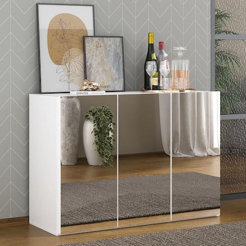 O Aparador Buffet 3 Portas com Espelho Vegas Multimóveis é produzido em MDP, que garante maior durabilidade, facilidade na limpeza, além de um acabamento superior. Com 3 portas, possui acabamento acetinado (cerca de 20% de brilho) e um excelente espaço interno para organizar seus pertences (as prateleiras internas suportam 2 e 5 Kg cada e o tampo 7 Kg). Os detalhes com espelhos nas portas deixam o móvel mais requintado, criando um ambiente moderno e charmoso. Os espelhos são de vidro (o que evita que a imagem fique distorcida) e lapidados, ou seja, passam por um processo para que as bordas não fiquem cortantes, o que garante maior segurança. Seu design minimalista, torna o móvel muito versátil, podendo ser utilizado de diversas maneiras e em qualquer ambiente.