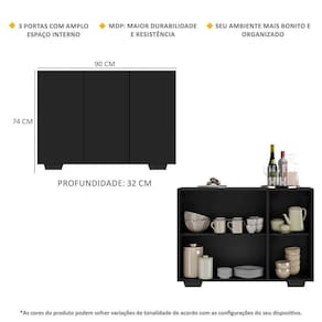 O Aparador Buffet 3 Portas com Pés Quadrados Veneza Multimóveis é produzido em MDP com acabamento acetinado (cerca de 20% de brilho), que garante maior durabilidade, além de um acabamento superior. Com 3 portas, possui um excelente espaço interno para organizar seus pertences (as prateleiras internas suportam 2 e 5 Kg cada e o tampo 7 Kg). Os pés quadrados, em polipropileno, facilitam na hora da limpeza. Seu design minimalista, torna o móvel muito versátil, podendo ser utilizado de diversas maneiras e em qualquer ambiente.