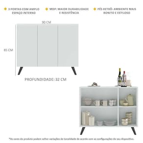 O Aparador Buffet 3 Portas Retrô Veneza Multimóveis é produzido em MDP com acabamento acetinado (cerca de 20% de brilho), que garante maior durabilidade, facilidade na limpeza, além de um acabamento superior. Com 3 portas, possui um excelente espaço interno para organizar seus pertences (as prateleiras internas suportam 2 e 5 Kg cada e o tampo 7 Kg). Os pés retrô, em polipropileno, dão um charme especial ao móvel deixando-o com um visual leve e permitindo você compor um ambiente com ar vintage e moderno ao mesmo tempo. Seu design minimalista, torna o móvel muito versátil, podendo ser utilizado de diversas maneiras e em qualquer ambiente.