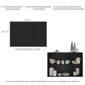 O Aparador Buffet 3 Portas Suspenso Veneza Multimóveis é produzido em MDP com acabamento acetinado (cerca de 20% de brilho), que garante maior durabilidade, facilidade na limpeza, além de um acabamento superior. Com 3 portas, possui um excelente espaço interno para organizar seus pertences (as prateleiras internas suportam 2 e 5 Kg cada e o tampo 7 Kg) e ainda acompanha kit para ser montado de forma suspensa, conforme a altura que você quiser do chão. Seu design minimalista, torna o móvel muito versátil, podendo ser utilizado de diversas maneiras e em qualquer ambiente.