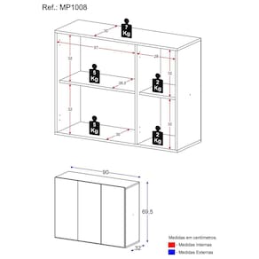Dimensões do produto montado: Altura: 69,5cm | Largura: 90cm | Profundidade: 32cm *Você pode consultar as medidas internas na imagem técnica do produto.