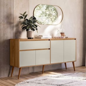 Ideal para quem busca decorar espaços pequenos, sem abrir mão do design e funcionalidade. Produto Montado: Sim Acabamento: Pintura UV Acabamento da Gaveta: Pintura UV Acabamento da Porta: Pintura UV Acabamento da Prateleira: Pintura UV Altura dos Pés: 25 cm Altura Máxima dos Pés: 25.0000 Ambiente Principal: Sala de Jantar codigo_ean: 7900288063458 Complexidade da Montagem: Alta: deve ser montado por um montador especializado Cor: Marrom/ Off White Cor do Produto: Marrom/ Off White Cor do Tampo: Marrom Cor Flex: não Cor Interna: marrom Escala de Brilho: Fosco Escala de Brilho da Gaveta: Fosco Escala de Brilho da Porta: Fosco Escala de Brilho da Prateleira: Fosco Formato: Retangular Gaveta com Chave: Não Itens Inclusos: 1 Aparador + Manual de Montagem Linha ou Coleção: Ravi Manual de Montagem e Instalação: https://product-hub-prd.madeiramadeira.com.br/977125/documents/c634b393-0ea0-4ce0-900b-fec929305eb4267237789217388499662797.pdf Marca: Peternella Móveis Material da Gaveta: MDP Material da Porta: MDP Material da Prateleira: MDP Material do Tampo: MDP Material dos Pés: PVC Material Principal: MDP Montagem Flex: não Necessita Montagem: Sim Origem do Produto: Nacional Pés Reguláveis: Sim Peso: 34,6 kg Peso Máximo por Gaveta: 2 kg Peso Máximo por Prateleira: 5 kg Possui Adega: Não Possui Espelho: Não Possui Gavetas: Sim Possui Pés: 05 Possui Portas: Sim Possui Prateleiras: Sim Possui Rodízio: Não Possui Vidro: Não Quantidade de Gavetas: 01 Gaveta Quantidade de Portas: 4 Portas Quantidade de Prateleiras: 01 Prateleira Recomendações de Uso, Manutenção e Limpeza: 1. Certifique-se de que todas as partes e componentes indicados no manual de montagem estejam perfeitamente identificados e disponíveis antes de iniciar a montagem do móvel; 2. Caso pequenos reparos sejam necessários durante a vida útil do móvel, utilize apenas componentes que estejam indicados neste manual; 3. Depois de terminada a montagem, tenha certeza de que todos os parafusos ou quaisquer outro componentes estejam bem apertados; 4. Não deixe o móvel exposto diretamente a raios solares, água ou excesso de umidade; 5. Não utilize quaisquer produtos derivados de gasolina, querosene, etanol, amoníaco, água sanitária, ácido e/ou equivalentes para limpeza do móvel; 6. Para limpeza utilize um pano liso e macio levemente umedecido. Pode-se usar lustra móveis ou equivalentes; 7. Não friccione objetos cortantes nem dê pancadas contra a superfície ou bordas do móvel; 8. Para evitar o perigo de asfixia, manter a embalagem plástica fora do alcance das crianças; Resistente à Chuva: Não Sapatas Niveladoras: Sim Sistema de Montagem: PARAFUSO E MINIFIX Suporta Até (kg): 50 kg Tipo de Corrediça da Gaveta: Metálica Telescópica Tipo de Dobradiça/Corrediça da Porta: Metálica Tipo de Porta: Bater Tipo de Puxador da Gaveta: Embutido Tipo de Puxador da Porta: Embutido