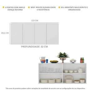 Dimensões do produto montado: Altura: 69,5cm | Largura: 123cm | Profundidade: 32cm *Você pode consultar as medidas internas na imagem técnica do produto.