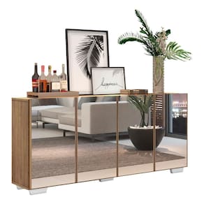 Aparador Buffet 4 portas c/ Espelho e Pés Quadrados Vegas Multimóveis Rustic/Branco - Marrom
