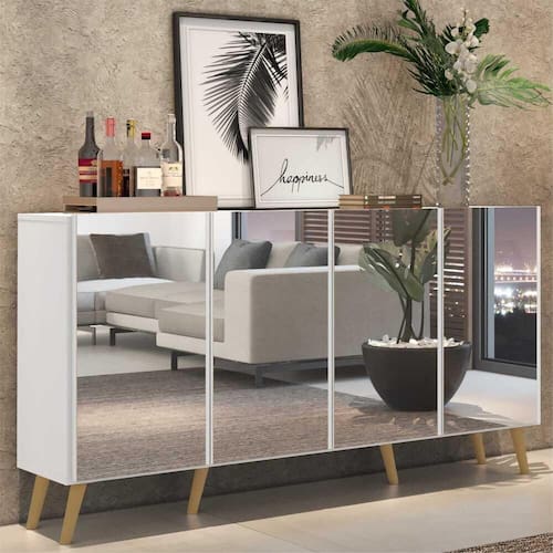 Aparador Buffet 4 portas c/ Espelho e Pés Retrô Vegas Multimóveis Branco/Natural