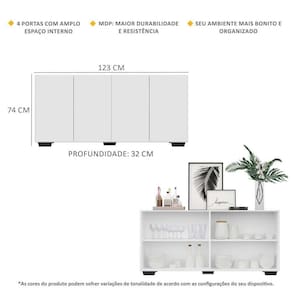 Dimensões do produto montado: Altura: 74cm | Largura: 123cm | Profundidade: 32cm *Você pode consultar as medidas internas na imagem técnica do produto.