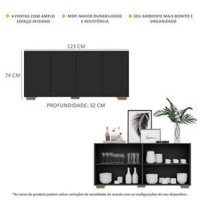 Dimensões do produto montado: Altura: 74cm | Largura: 123cm | Profundidade: 32cm *Você pode consultar as medidas internas na imagem técnica do produto.
